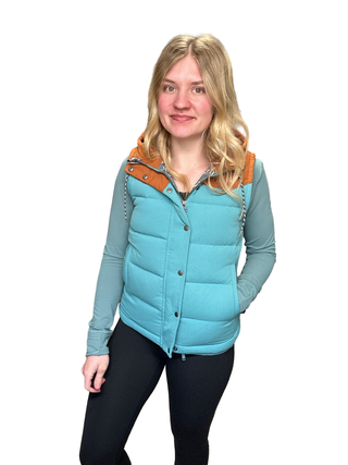 Women's S - Orange and Blue Patagonia Bivy Down Filled Hooded Vest